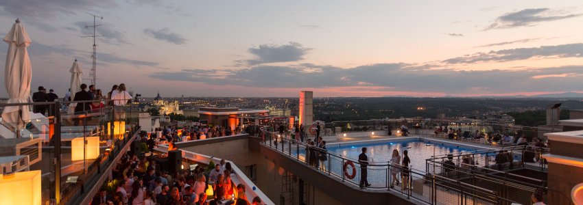 Su conocida piscina exterior , localizada en la azotea del Hotel , ofrece las mejores vistas de la ciudad. La terraza del Hotel, con una superficie aproximada de 1500m2 y una vista panorámica de la ciudad de 360º, tiene capacidad para eventos hasta 350 personas.